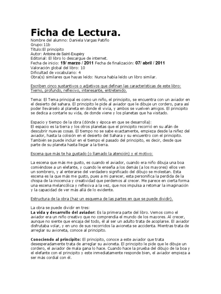 El final del principito es el final de un libro tan bello que parece mentira que el hombre sea capaz de tanta maldad e ignorancia. Resulta agradable leer un libro que conecta perfectamente con tus ideas sobre la vida, todo lo que el autor perdió y recupera al final del libro es importante conservarlo para vivir felizmente. Dios, el mal, y los virus march 27, 2020; También se tenía que ocupar de su bella flor. Ensayo del libro el principito con introduccion desarrollo y conclusion, length: